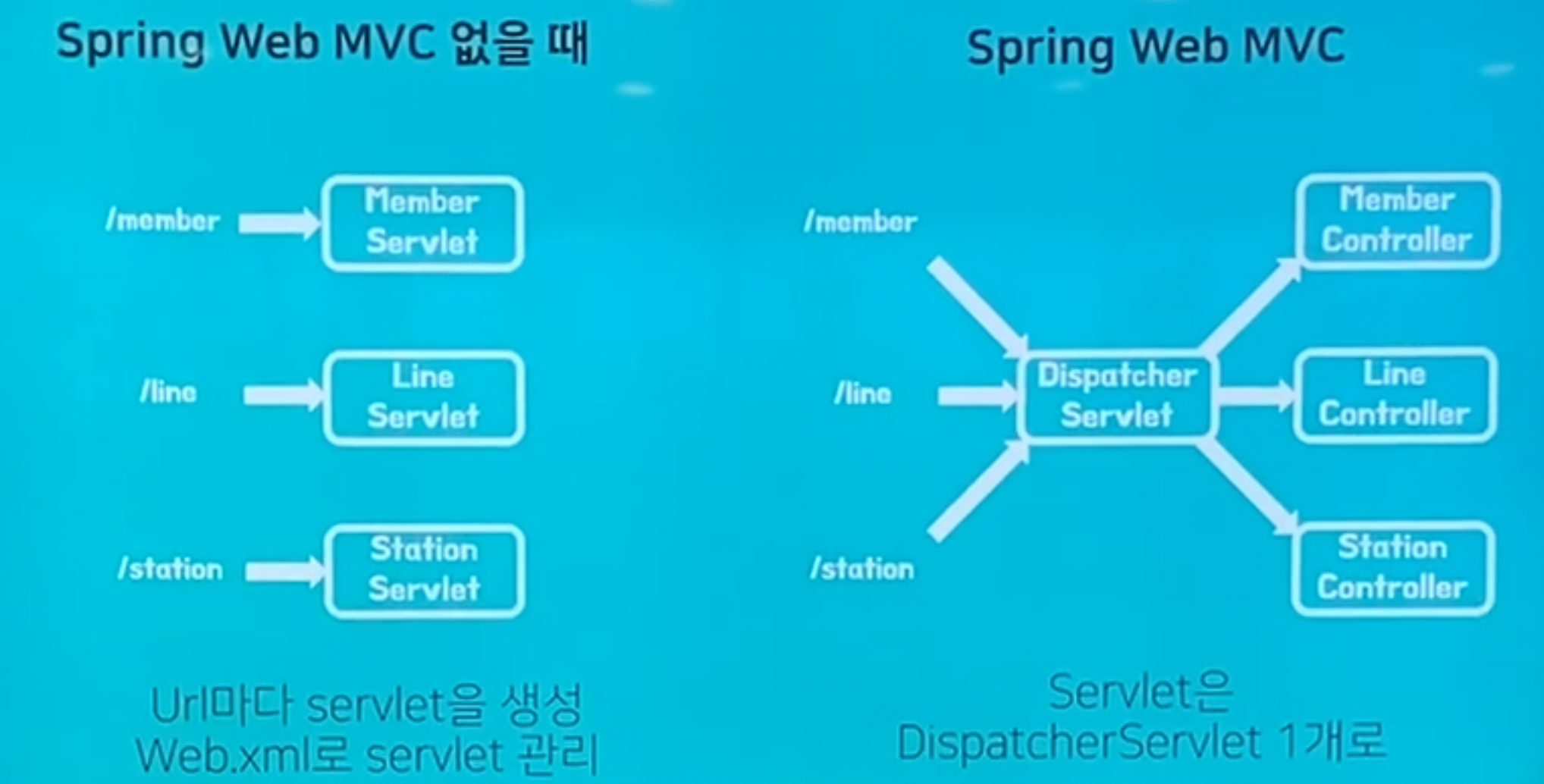 Spring MVC는 디스패처 서블릿이 등장함에 따라 web.xml의 역할을 상당히 축소시켜주었습니다.