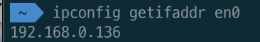 - local PC IP를 보려면 터미널에서 ipconfig getifaddr en0을 통해 확인이 가능합니다.