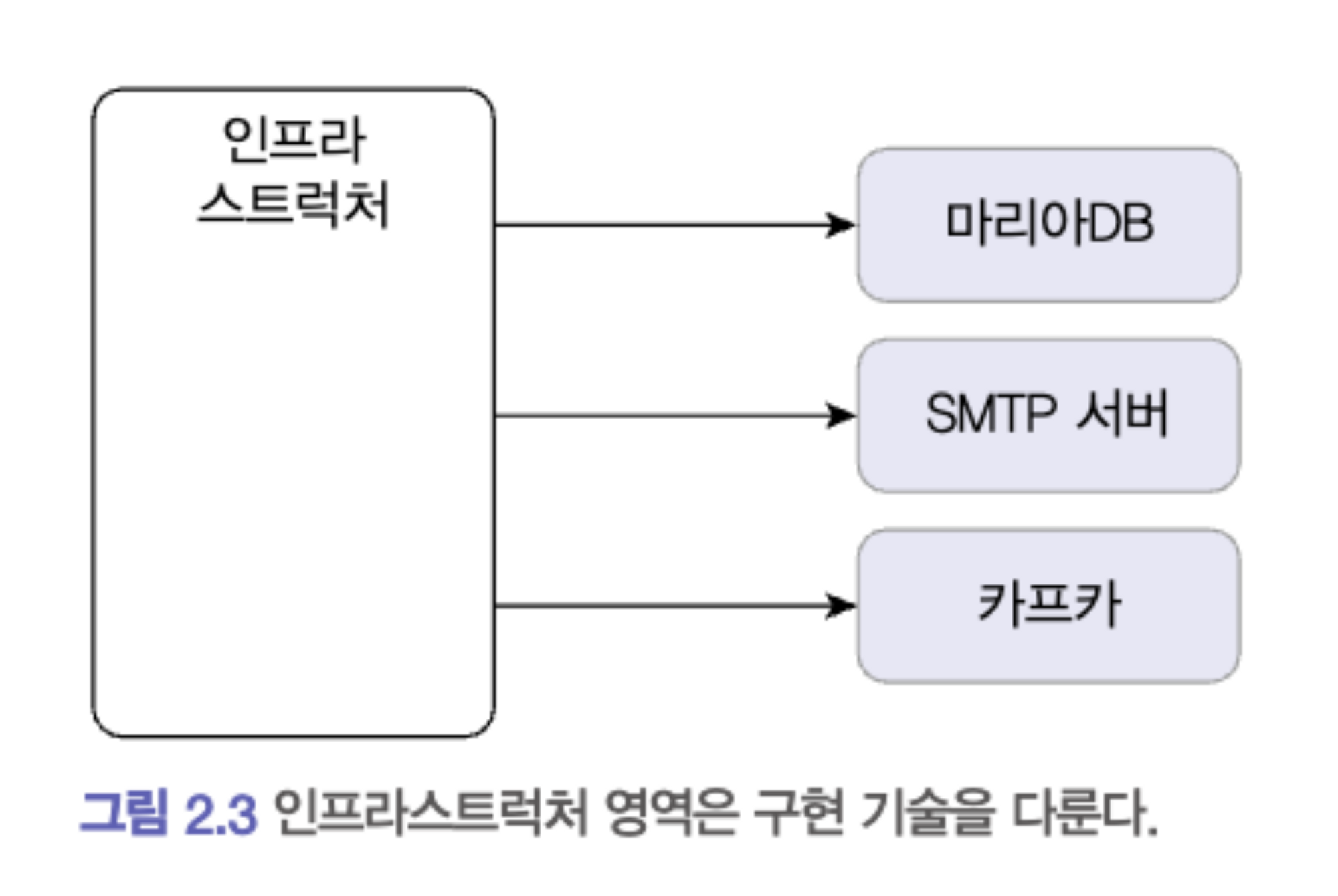 - 인프라스트럭처는 표현 영역, 응용 영역, 도메인 영역을 지원한다.