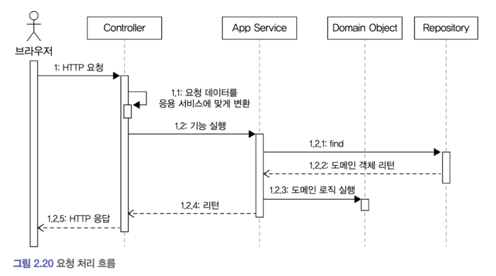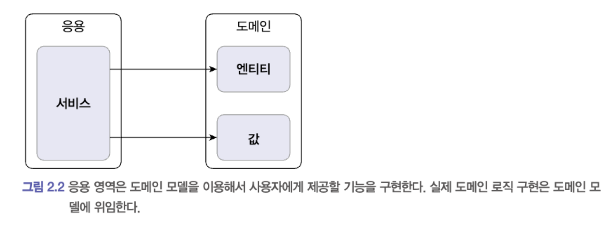 - 응용 서비스는 로직을 직접 수행하기 보다는 도메인 모델에 로직 수행을 위임한다.