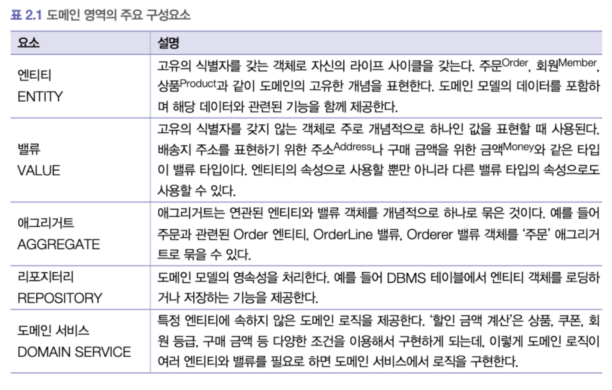 - 위 구성요소는 에릭 에반스가 [도메인 주도 설계]에서 소개한 패턴에 기반하고 있다.