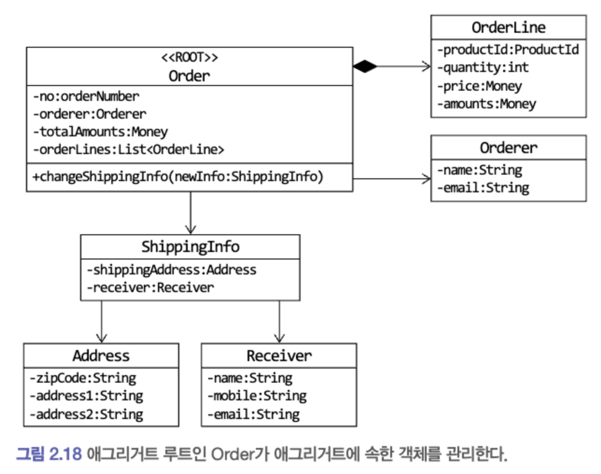 - 이는 애그리거트의 내부 구현을 숨겨서 애그리거트 단위로 구현을 캡슐화할 수 있도록 돕는다.