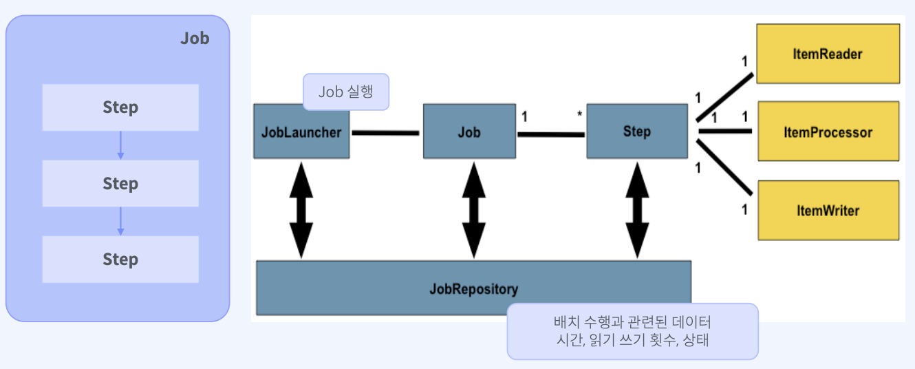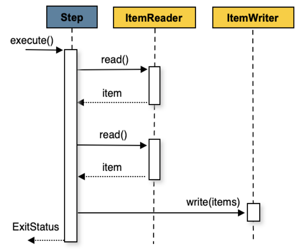 - Job 실행의 흐름과 처리를 위한 틀을 제공 - Reader, Processor, Writer, Skip, Retry 등