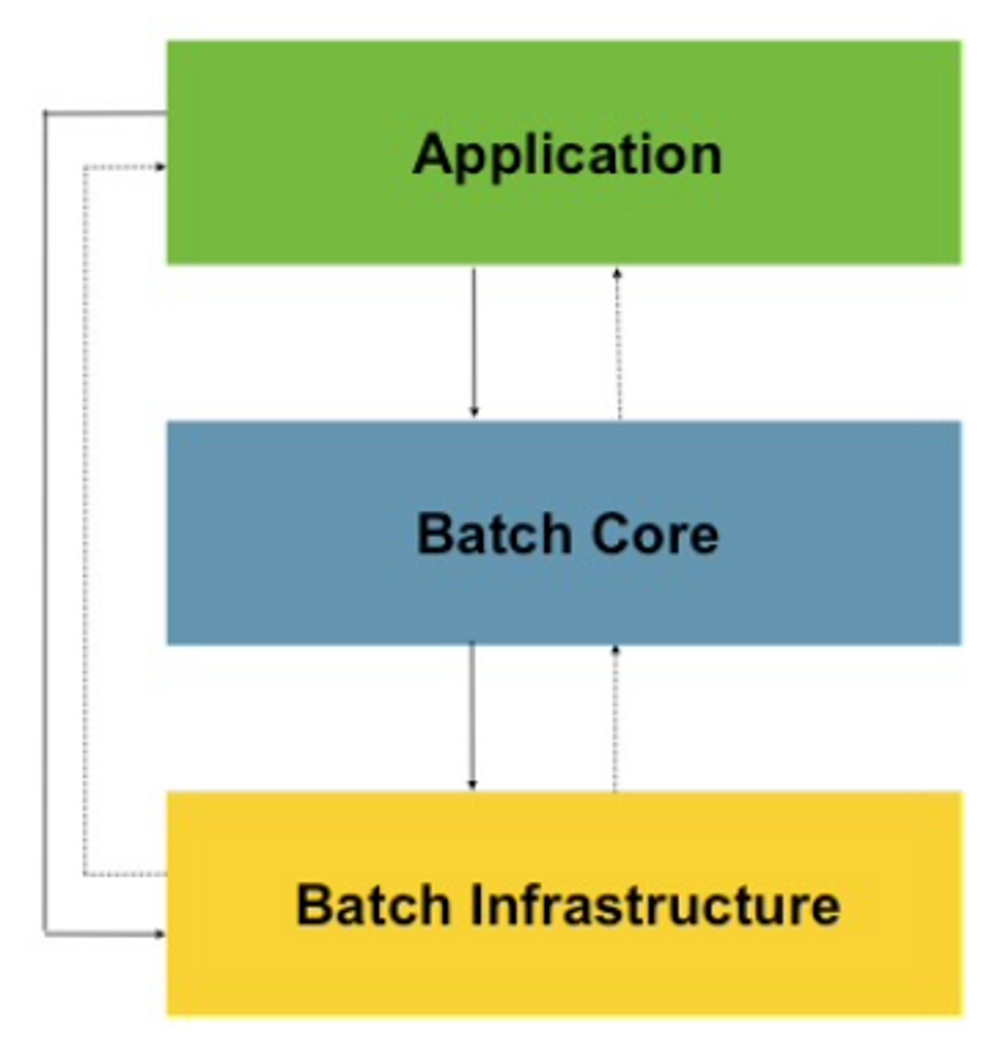 - 배치는 대량의 데이터를 처리하기 위해서 여러 가지 기능을 제공 → 개발자는 업무 로직의 구현에만 집중하고 공통적인 기반 기술은 프레임워크가 담당