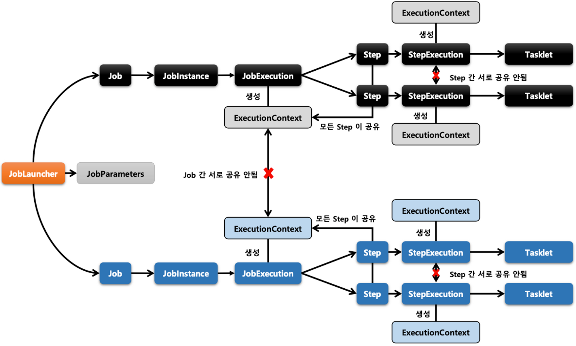 - job - 각 job의 jobExecution에 저장 → job간 공유할 수 없음, step간 공유 가능