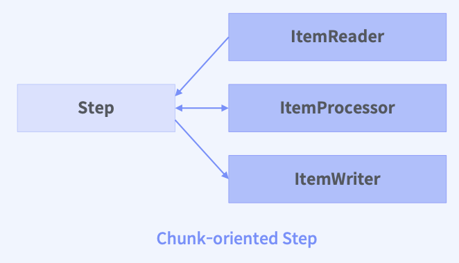 - Job 실행의 흐름과 처리를 위한 틀을 제공 - Reader, Processor, Writer, Skip, Retry 등