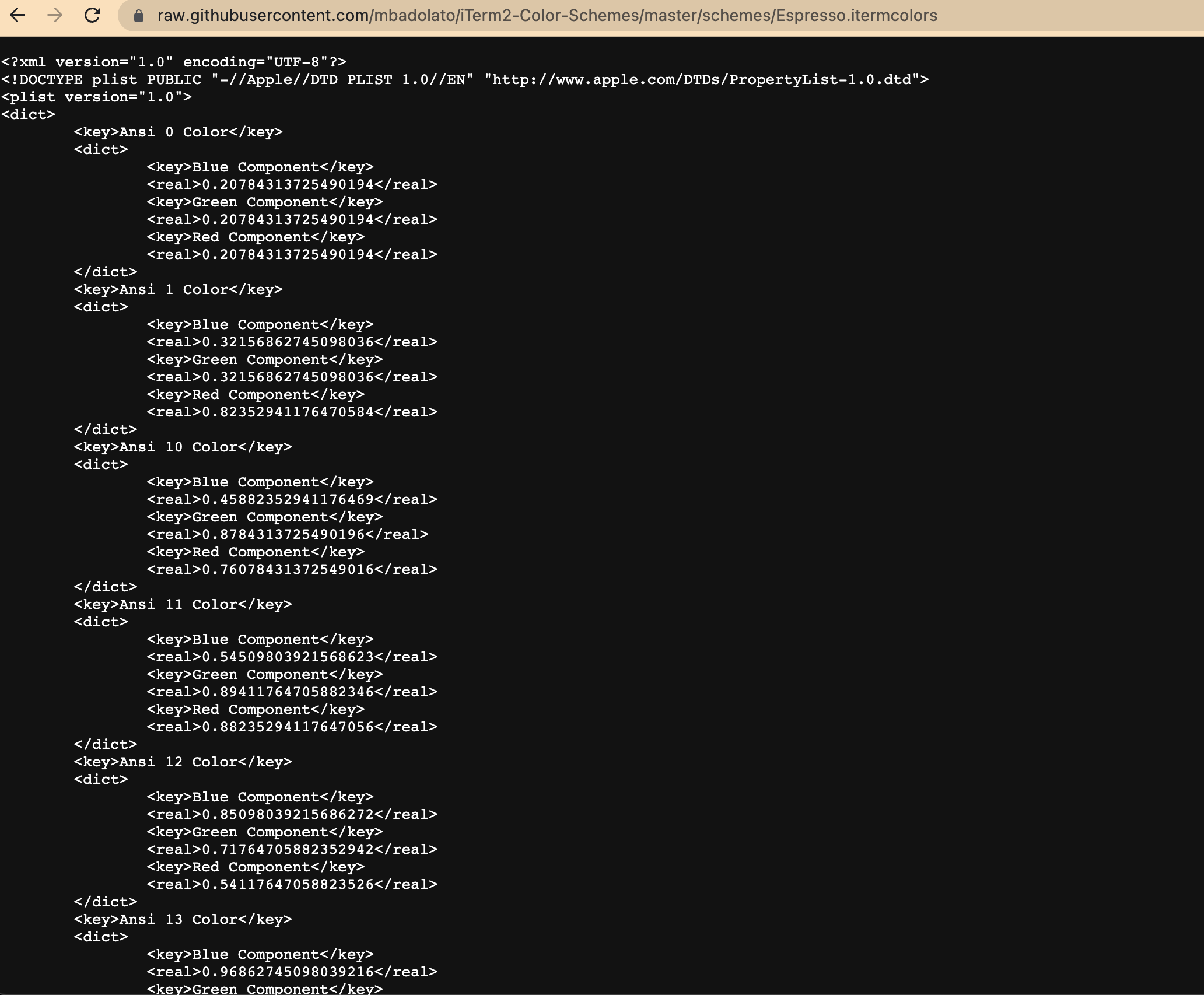 curl -LO https://raw.githubusercontent.com/mbadolato/iTerm2-Color-Schemes/master/schemes/Espresso.itermcolors